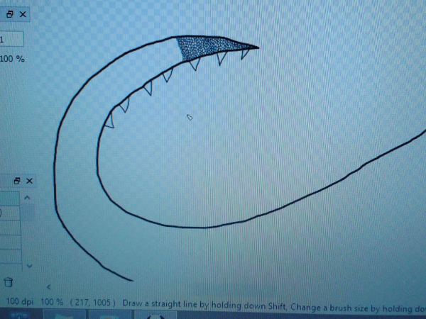 At this point there are some scales; I began with the tail first, because it’s the smallest spot, and it feels logical to start small and then continue to everywhere else.